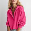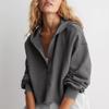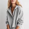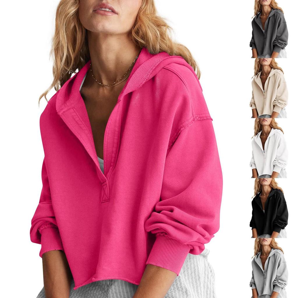 Damska Modna Jednolita Kolorystyka Dekolt V Długi Rękaw Luźny Pulower z Kapturem Krótka Bluza