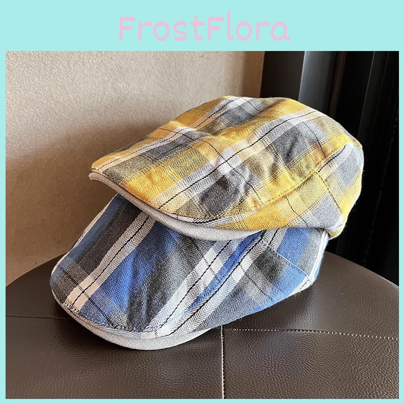 Vintage Plaid Beret Hat For Women With Breathable Cotton Blend Fabric For Art Lovers