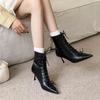 Modne damskie botki na kostkę ze szpiczastym noskiem i cienkimi obcasami Buty Modne sznurowane nowoczesne damskie krótkie buty Damskie czółenka Buty