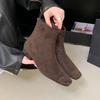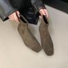 Moda Damskie Kwadratowe Palce Damskie Płaskie Buty Botki Buty Z Zamkami Obuwie Moda Flock Kobiety Krótkie Buty Płaskie Buty
