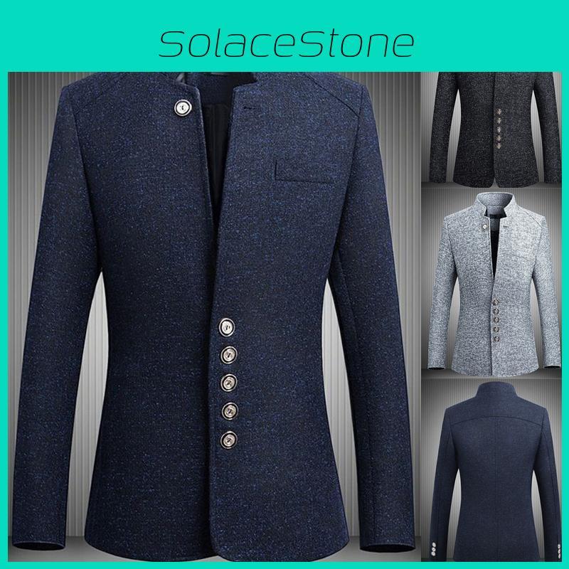 Elegant Mens Single Breasted Stand Collar Jacket Chinese Tunic Suit Business Blazer