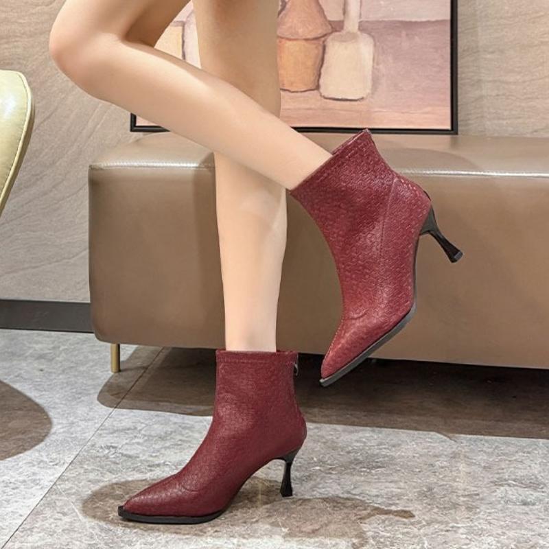 Moda Miękka Podeszwa Nisza High-end Francuski Szpiczasty Nosek Cienki Obcas Wąskie Kozaki Damskie Wszechstronna Moda 2025 Nowe Botki na Wysokim Obcasie