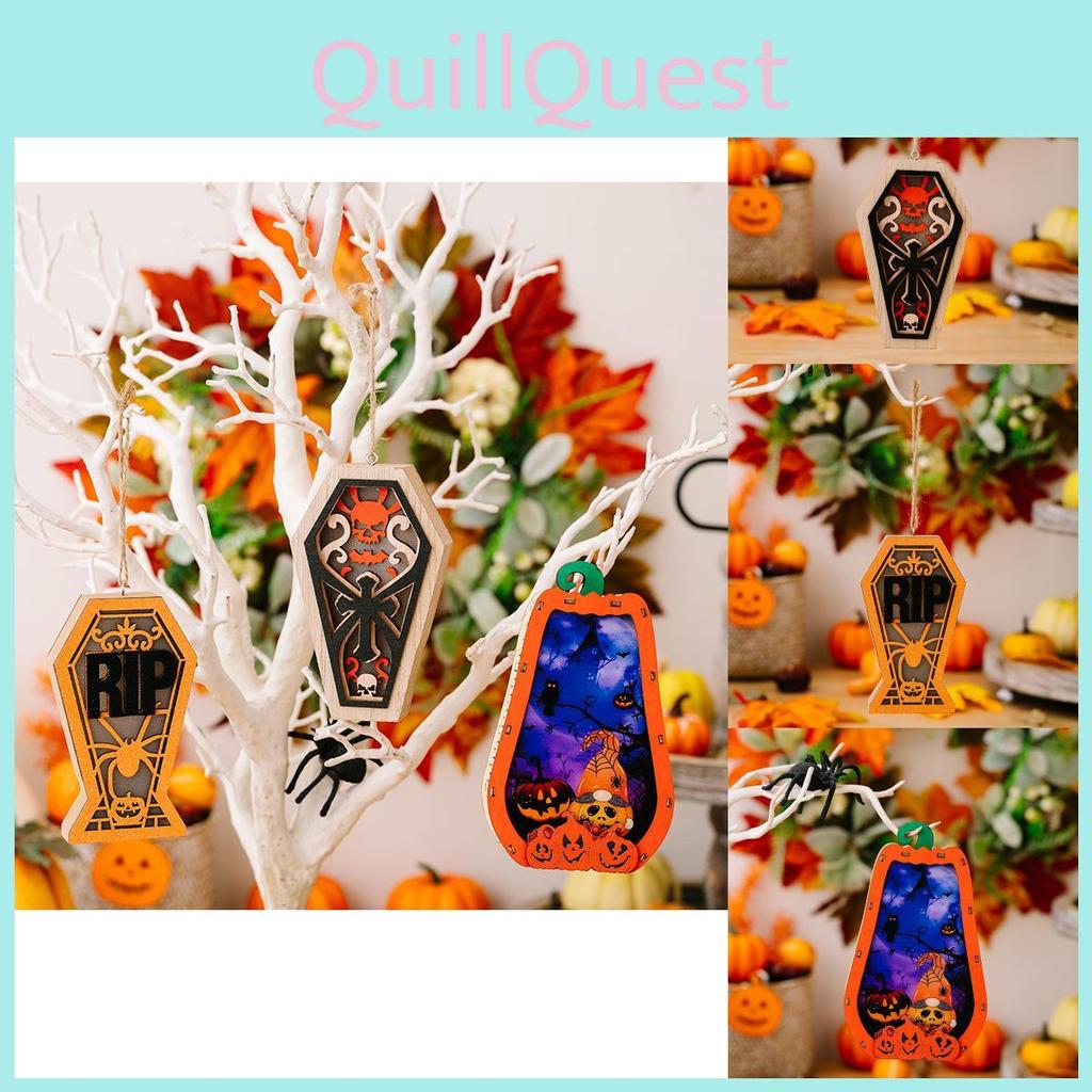 Świąteczne Drewniane Dekoracje Halloween Wiszące Dynia Pająk Czaszka Podświetlane Pudełko