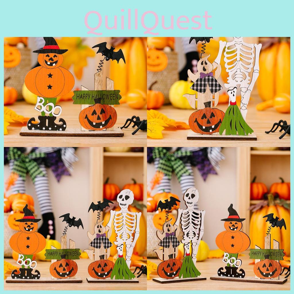 Whimsical Halloween Wooden Decoration Including Spring Bat Pumpkin And Skull For Spooky Atmosphere