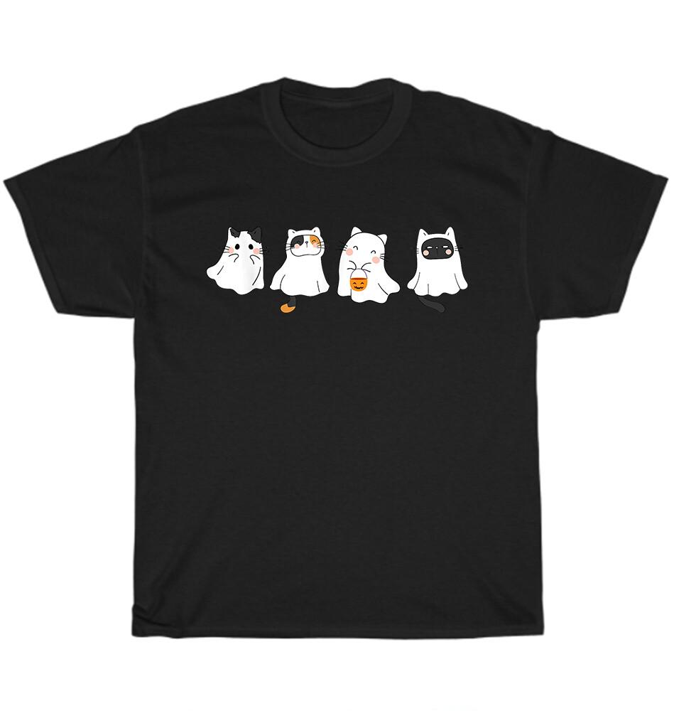 Cute Halloween Cat Ghost Costume Pet Animal Lover T-Shirt Unisex Funny Tee Gift