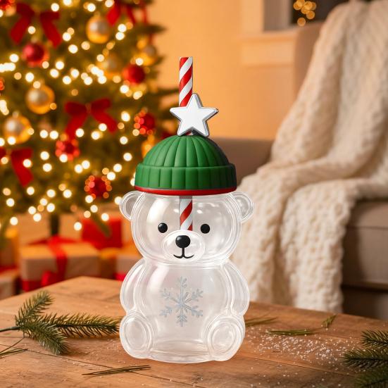 Szklany kubek w kształcie misia z pokrywką i słomką Przezroczysty kubek do napojów Kubek ze słomką Honey Bear na zimne napoje Kawa Piwo Wino Koktajle