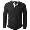 Koszulka bazowa T-shirt Paski pionowe Męska koszulka POLO Nowa okrągły dekolt Długi rękaw Henley