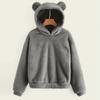 Damska Moda Długi Rękaw Jednolity Kolor Polar Uszy Kaptur Ciepły Sweter Bluza