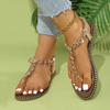 Modne Letnie Damskie Buty 2024 Wysokiej Jakości Klapki Duży Rozmiar Modne Niskie Obcasy Metalowe Zdobione Kwiatowe Rzymskie Sandały dla Kobiet