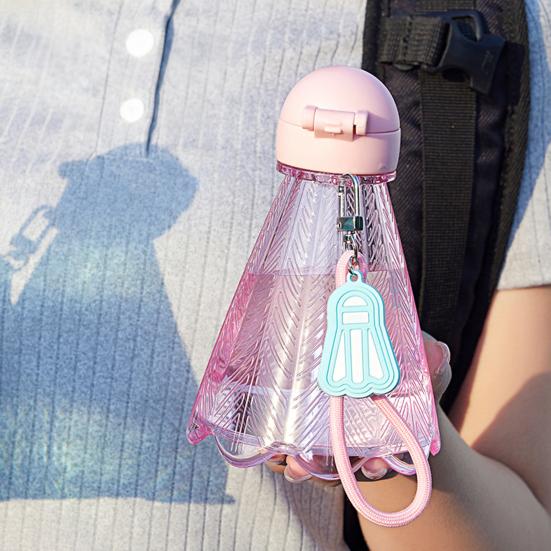 Bidon w kształcie badmintona ze słomką i paskiem do noszenia 10 oz Sportowa butelka na wodę Śliczna pokrywka typu flip-up Butelka na wodę do biura, na siłownię, na zewnątrz