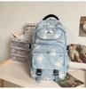 Description: Introducing our Eye-catching Colorful Casual Backpackan ideal companion for school that perfectly blends style, comfort, and functionality. Designed with a playful and adorable bear graphic, this backpack will appeal to students of all ages and genders. Available in a vibrant palette that includes black, pink, blue, green, and purple, it not only stands out but also complements any outfit with ease. Whether youre heading to class, hanging out with friends, or embarking on a weekend adventure, this backpack adds an element of fun and personality to your look.