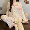 Imitacja bawełny falbanka brzeg liścia pastoralny uroczy królik dziewczynka piżama jesienna z długim rękawem kreskówkowa miękka kleista odzież domowa dwuczęściowy zestaw