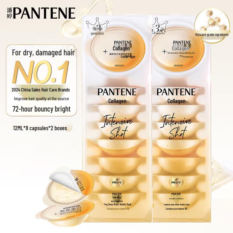 Pantene Collagen Hair Mask for Dry Frizzy Hair, 2 Packs (8x12ml each)