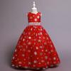 Summer Spring Autumn Kids Teen Girl Dress Sleeveless Snowflake Embroidery Mesh Princess Dresses Children Tutu Flower Girls Kid Party Ball Gown