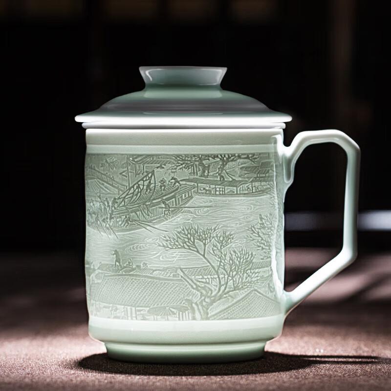 Jingdezhen Celadon Carved Ceramic Tea Cup Gift Set