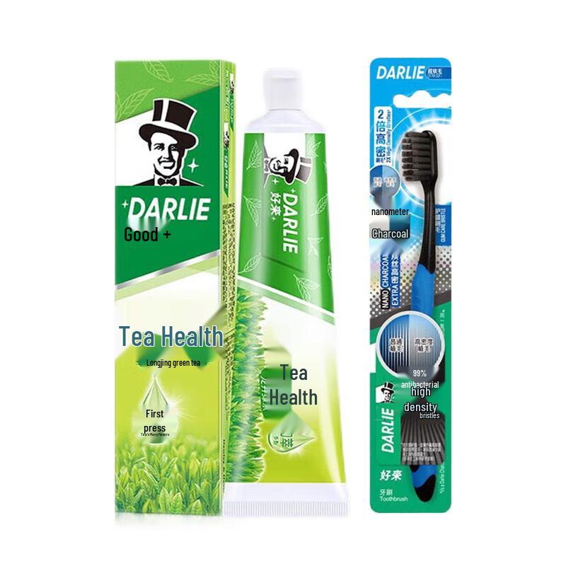 Experience comprehensive oral care with the Darlie Tea Care Longjing Green Tea Toothpaste Set. This fluoride-free toothpaste, infused with the refreshing essence of Longjing green tea, is formulated to brighten teeth, strengthen enamel, and provide long-lasting fresh breath. Each set includes a 140g tube of toothpaste and a premium charcoal silk toothbrush for an enhanced cleaning experience. Enjoy a naturally clean and fresh feeling with every brush.