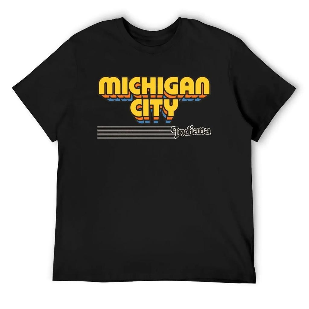 Michigan City, Indiana Retro Stripes T-Shirt custom t-shirts rapper graphic tees new gifts and t-shirts summer top mens t shirt
