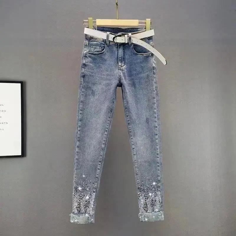 Women Spring Autumn Korean Vintage Elastic Tight Denim Jeans Casual High Waist Pencil Pants