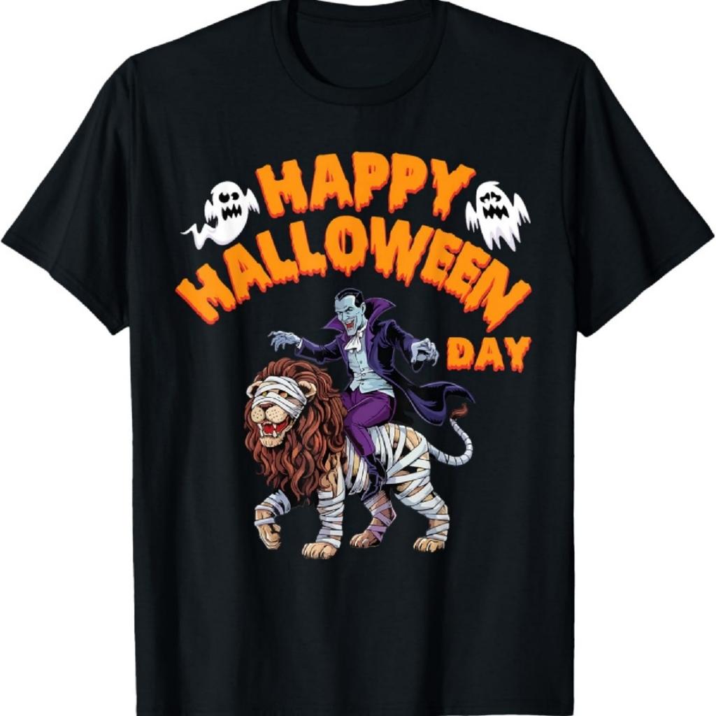 Dracula Riding a Mummy Lion Happy Halloween Animals Lover T-Shirt