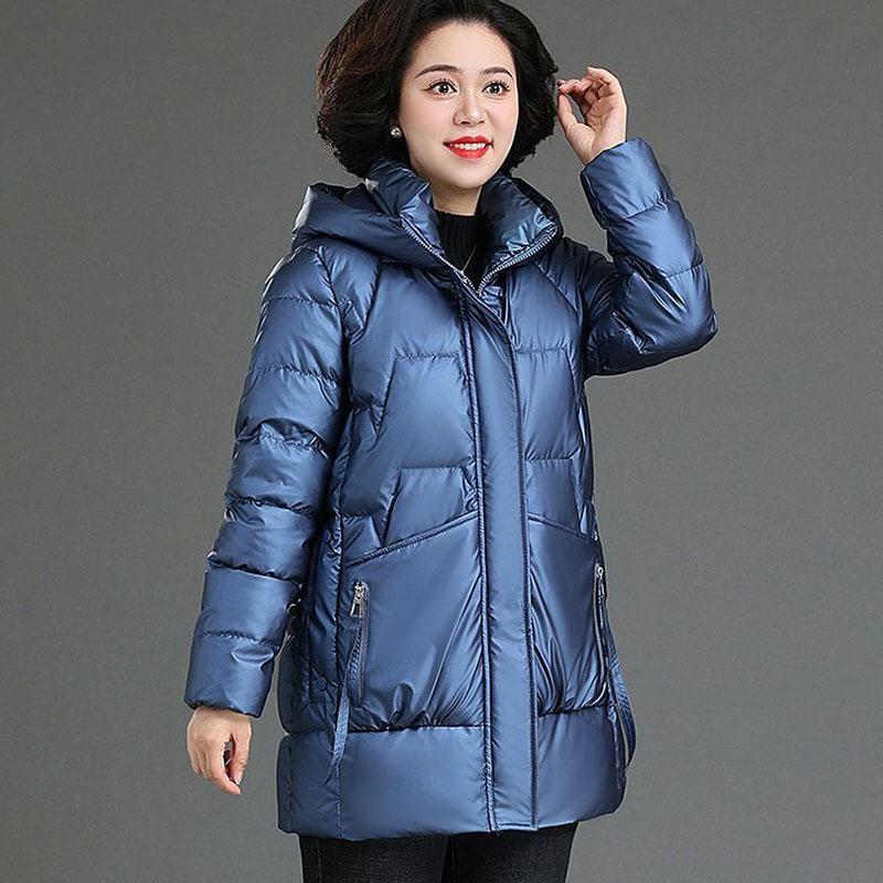Winter Women's Shiny No-wash Padded Jacket Mid-length Hooded Padded Coat
