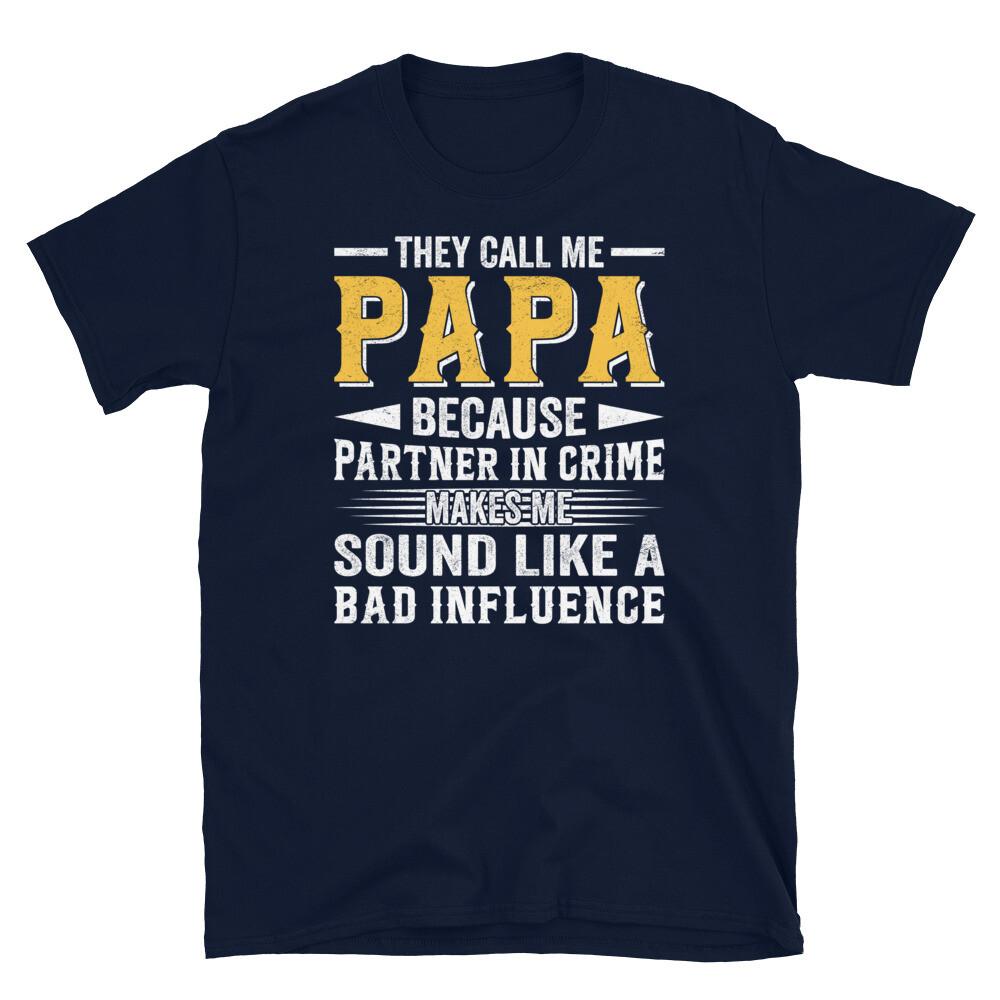Nazywają mnie Papa Partner w Zbrodni Zły Wpływ Koszulka Unisex z Krótkim Rękawem