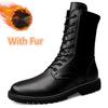 Fashion New Men Leather Shoes Genuine Winter Long Men Boots Casual Punk Motorcycle Boots Side Zipper Black Solid Boots
