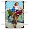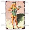 Beauty Woman Metal Sign Bar Pub Decor Plaque Metal Vintage Crafts Home Decor Painting Plaques Art Pinup Poster