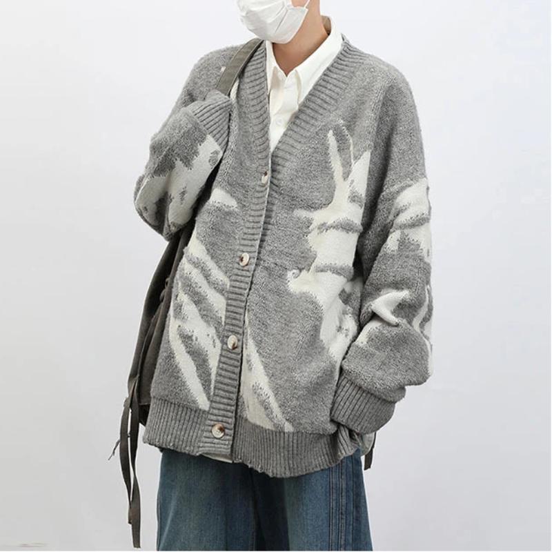 American Vintage Cardigan Sweater Men Autumn Winter Casual Loose Fashion Trendy Streetwear Hip Hop Knit Coat
