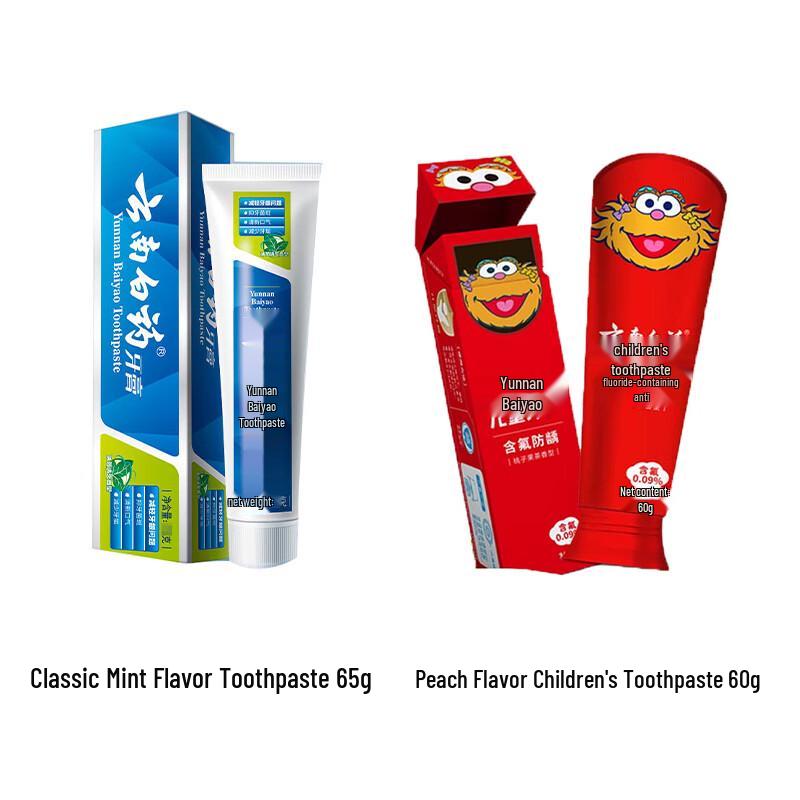 Zestaw past do zębów Yunnan Baiyao: Klasyczna Mięta i Dziecięca Brzoskwinia