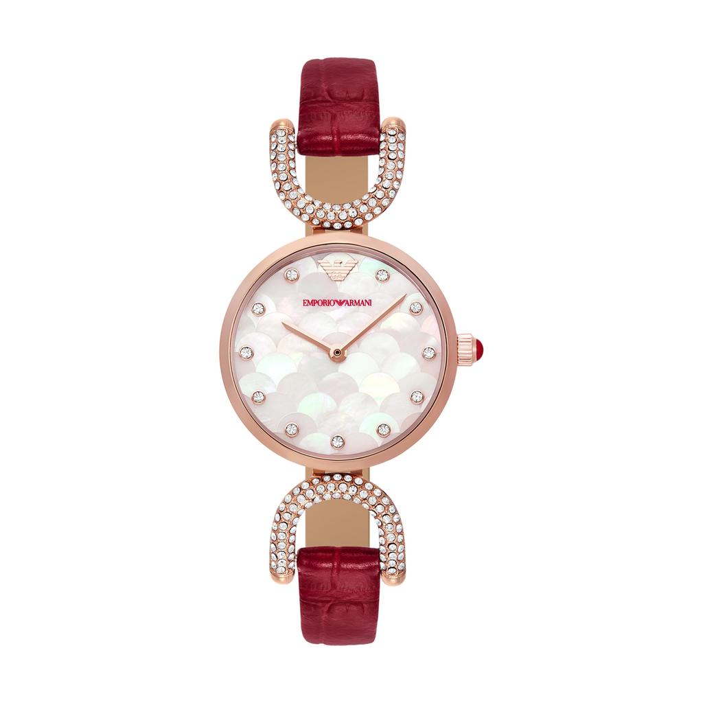 Emporio Armani Burgundy Leather AR11737 Women's Two-Hand Watch,