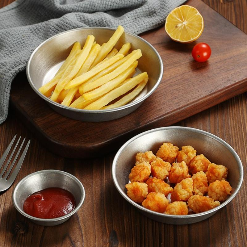 Vintage Talerz ze stali nierdzewnej Barbecue Restauracja Zachodnia Sałatka Mała miseczka Filiżanka na sos Spodek na frytki Ketchup Naczynia kuchenne