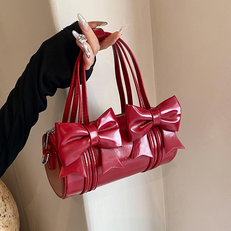 Niche bow underarm bag women's new fashion girl high-end leather crossbody pillow bag