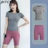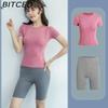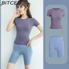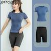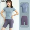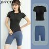 BITCED Damska odzież sportowa Top do jogi - Dopasowana kurtka z krótkim rękawem Zestaw do siłowni, biegania - Szybkoschnąca odzież treningowa na wiosnę, jesień, lato