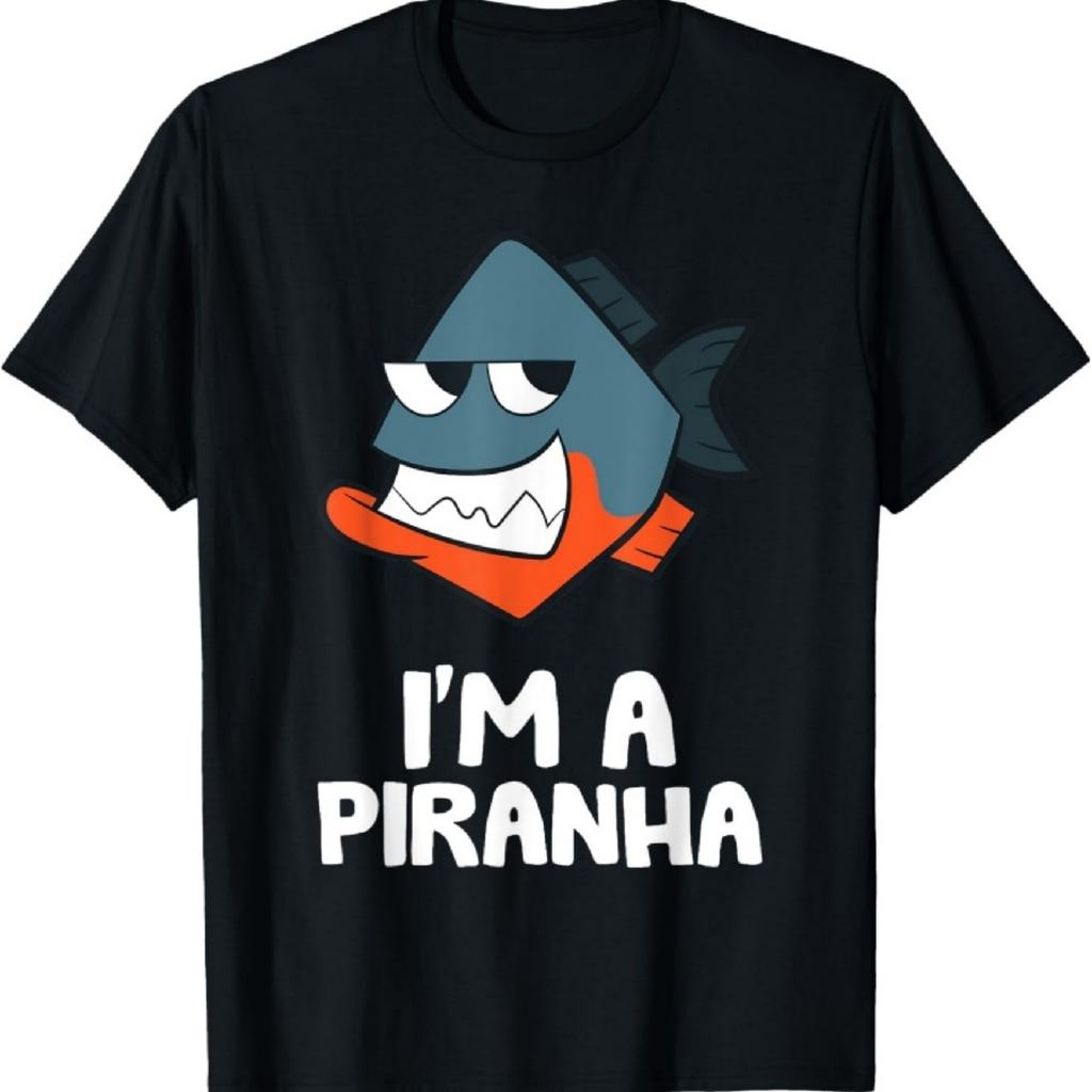 Jestem Piranią Kawaii Rysunek Ryby Piranii Koszulka Unisex dla Dzieci Czarna Mała