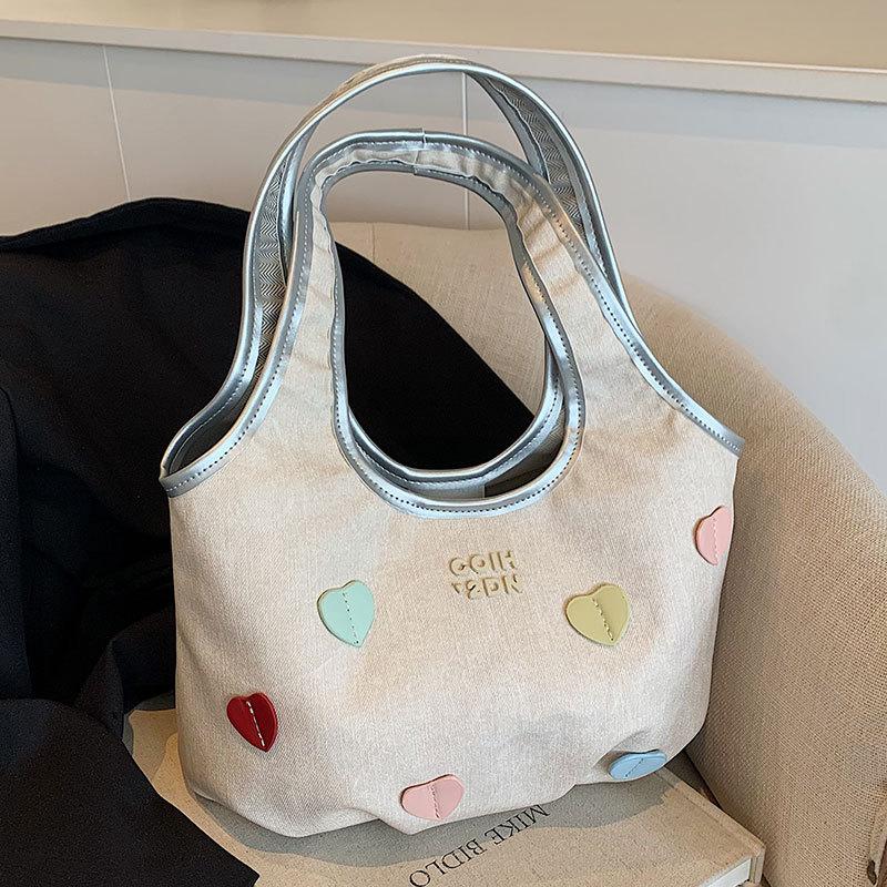 Hot Sale Niche Contrast Color Love Underarm Tote Bag Female Student Commuter Casual Versatile Shoulder Bag