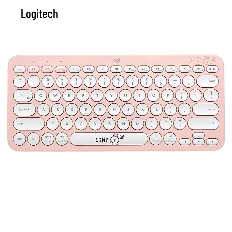 The Logitech K380 Bluetooth keyboard is a stylish and ultra-thin wireless keyboard designed for multi-device use, connecting to up to three devices simultaneously. Featuring comfortable chocolate-style keys and a durable ABS body, it offers a smooth membrane typing experience. This special LINE FRIENDS Cony edition adds a touch of unique design, making it a perfect companion for home or office.