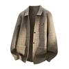 Męski sweter kardigan jesienno-zimowy luźny z geometrycznym wzorem i kontrastowymi kolorami modny casualowy top