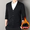Nowy Jesienno-Zimowy Męski Kardigan Sweter z Dekoltem V, Aksamitny, Gruby, dla Mężczyzn w Średnim i Starszym Wieku, Ciepła Dzianinowa Kurtka