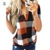 Women t-shirt makes you look beautiful and attractive with the v neck and plaid pattern design.