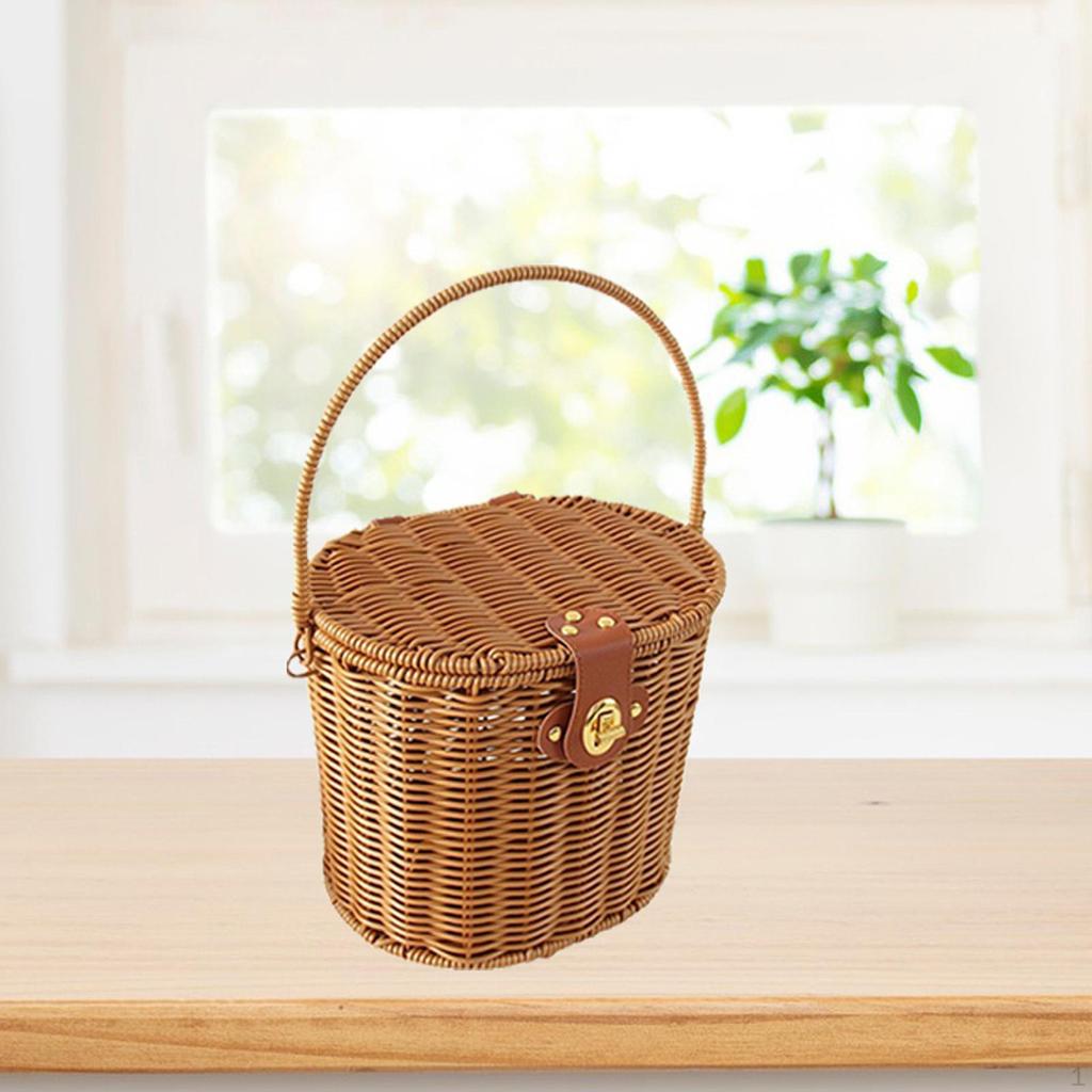 - 【Wzór imitujący rattan】: Kosz piknikowy z pokrywą, imitacja rattanu, z uchwytami i pokrywą, dzięki czemu idealny na wycieczki, imprezy