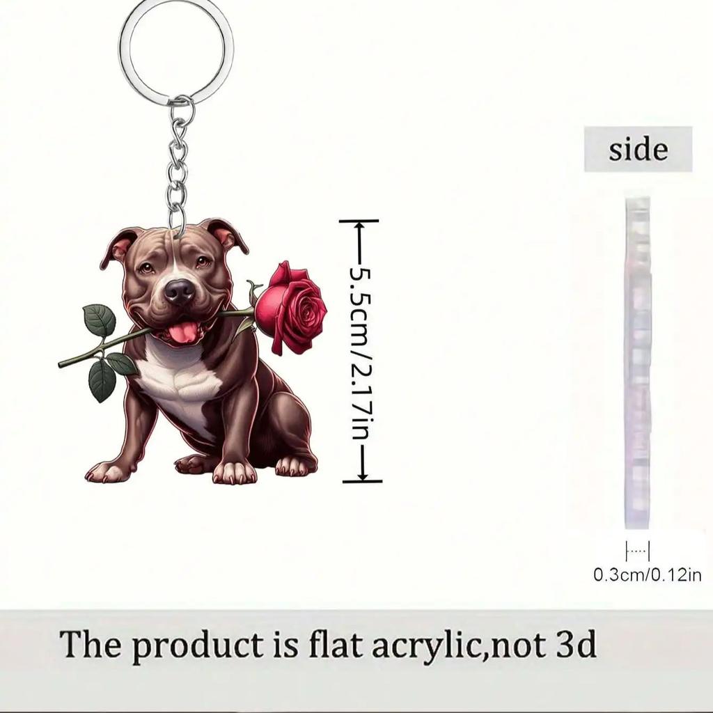 1 piece of cute little dog keychain with rose in its mouth,innovative design, DIY backpack decoration, romantic acrylic keychain
