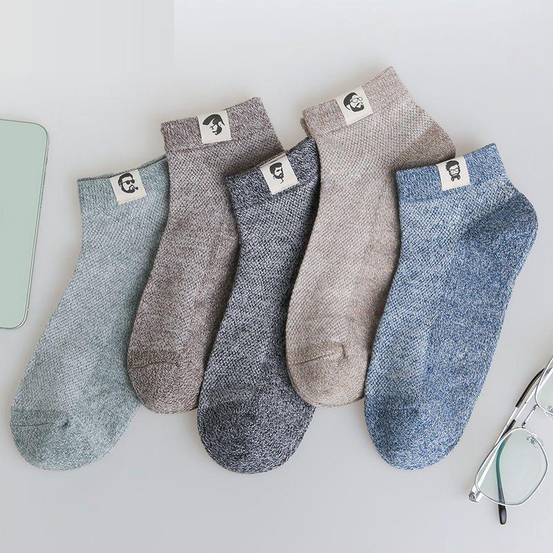 Men Summer Thin Cotton Mesh Breathable Socks Sports Casual Fashion Label Short Tube Boat Socks for Men Comfortable Lightweight
