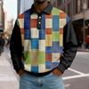 Męska codzienna luźna bluzka z blokami kolorów, z klapą zapinaną na guziki i długim rękawem