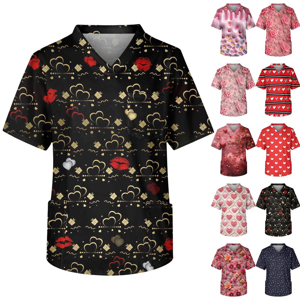 Męska codzienna bluzka z krótkim rękawem z dekoltem w serek i nadrukiem, z kieszenią na piersi