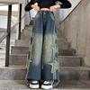 Dziecięce luksusowe szerokie jeansy z lampasem po boku dla nastolatki stylowe uliczne hip-hopowe spodnie dżinsowe nastolatki dziecko spodnie gwiazda