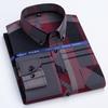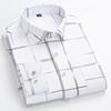 Męskie Koszule Eleganckie Wiosna Jesień Najnowsze Nieprasujące się Odporne na Zmarszczki Biznesowe Casualowe Wzór Cienki Kratka Dopasowany krój chemise homme