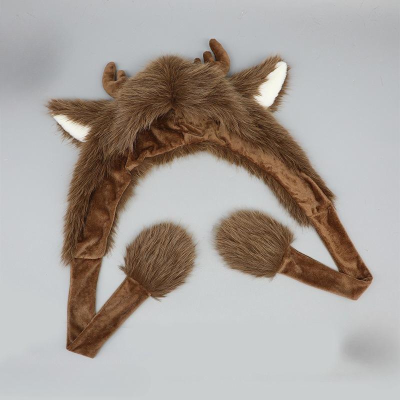 Warm Christmas Plush Elk Pullover Hat Autumn/Winter Thicken Windproof Cute Ear Protection Faux Fur Lined Comfortable Bomber Cap