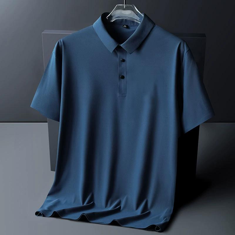 Spring Summer Men's Ice Silk Polo Shirt Men's Short Sleeve Large Thin T-shirt Cool Relaxed Polo Neck Half Sleeve T-shirt Solid Color Shirt