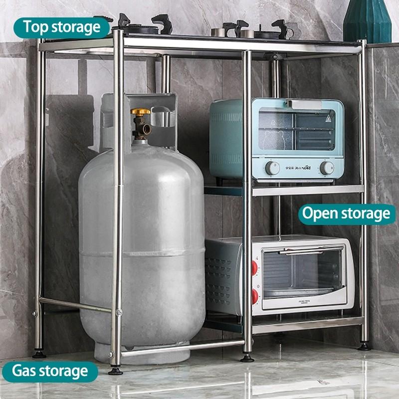 Domowe półki na stół kuchenny Wielofunkcyjny stojak do przechowywania kuchenki gazowej Pogrubiony stojak gazowy ze stali nierdzewnej