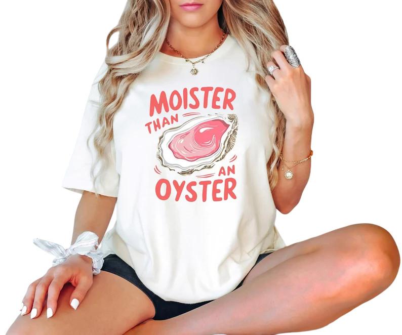 Bardziej wilgotna niż ostryga Koszulka, Retro Zabawna Koszulka Graficzna, Unikalna Koszulka z Humorem